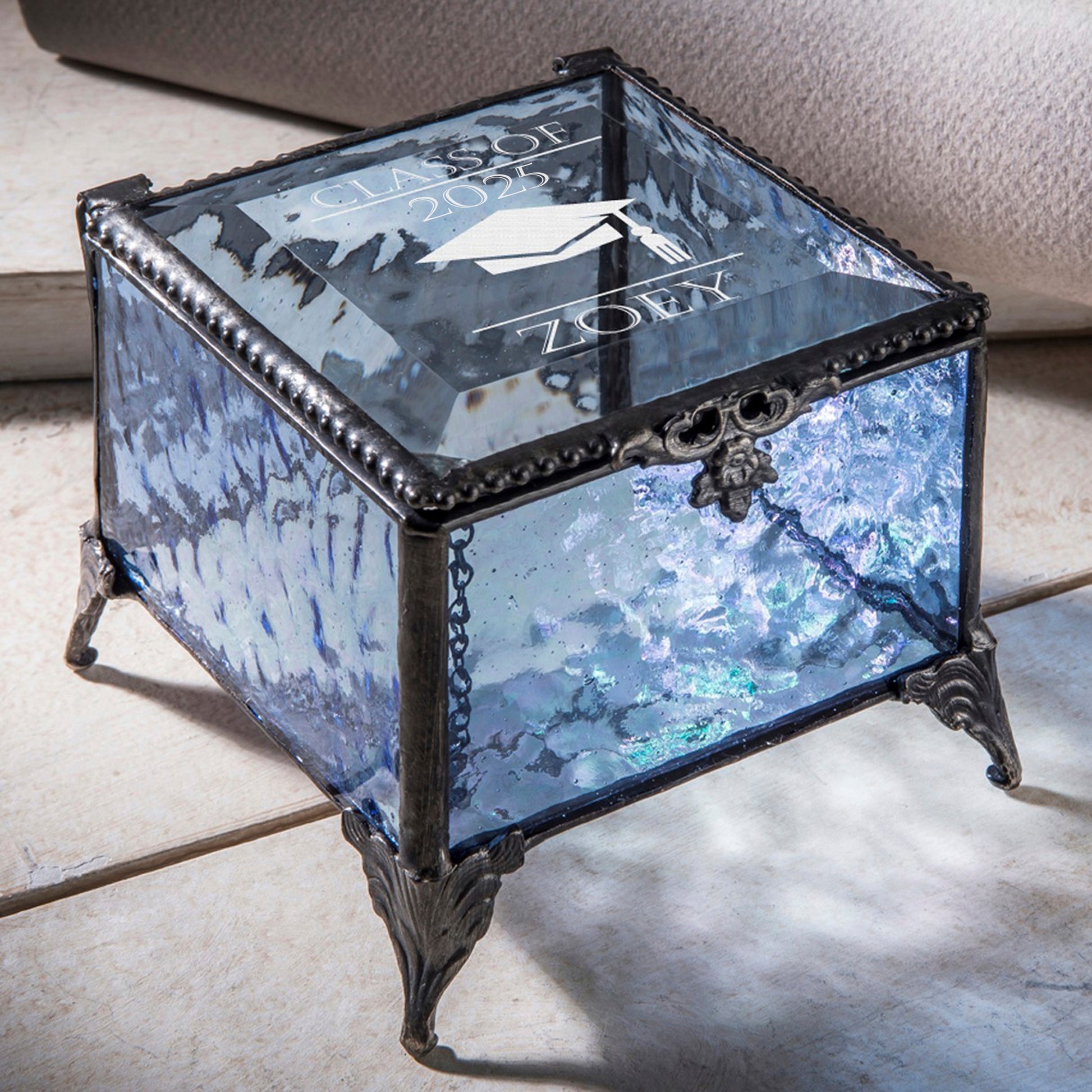 The Class of 2025 are about to walk into their future. Give a glass jewelry box personalized for your college, high school or middle school graduate.