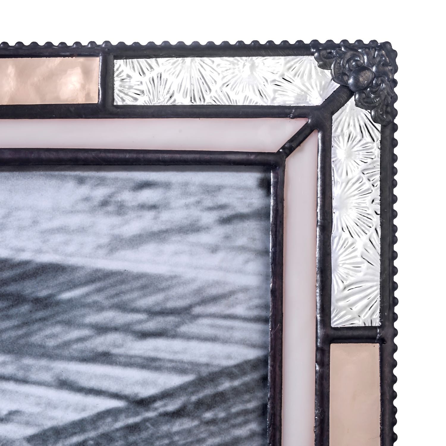 Showcase cherished photos on tabletops with a frame that pairs stained-glass artistry and vintage Florentine detailing. Made from ivory and peach stained glass, this frame features decorative Florentine accents and a sturdy easel back that holds the frame vertically or horizontally for tabletop display. Available in 4x6, 5x7, and 8x10 sizes, the frame includes a clear protective front and removable backing for easy photo changes. Ideal for adding a warm, timeless touch to any surface.