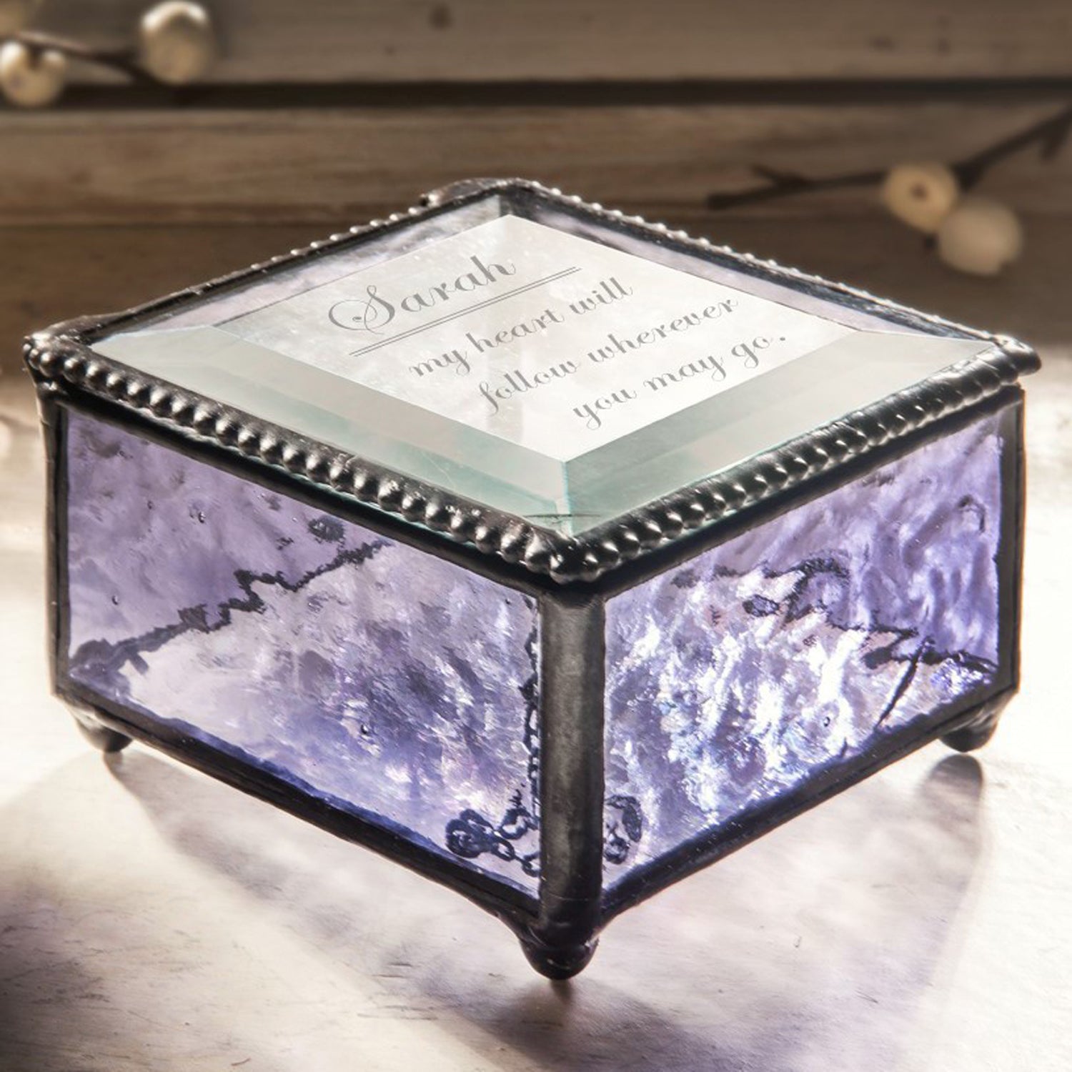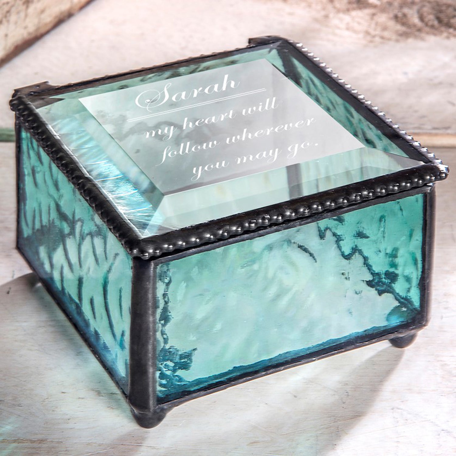We are sure she will love this glass keepsake box to showcase her favorite jewelry pieces, trinkets or treasures. But if you want to show a little more emotion personalize it.