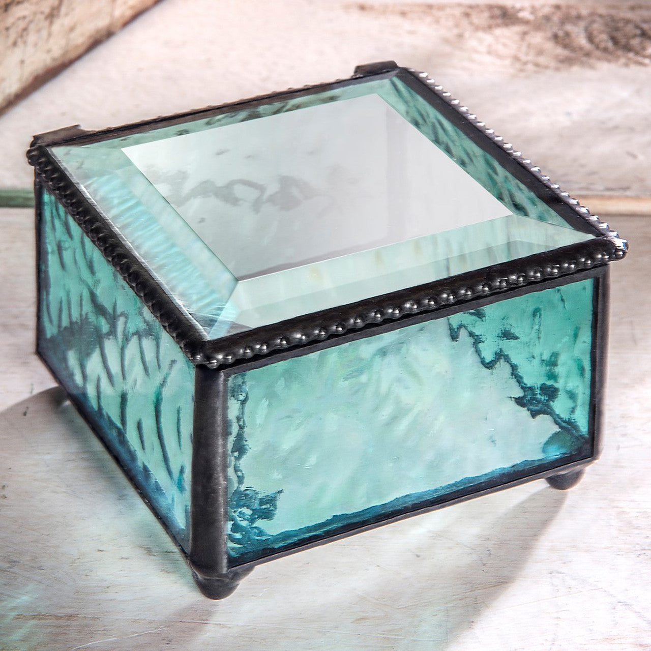 Whether you are looking for a box to fit your home décor or to give as a gift, this will little box will showcase those favorite jewelry pieces, trinkets or treasures. Available in several colors including clear cube, windsor blue (turquoise), purple, antique yellow and clear iridescent. All J Devlin jewelry boxes are made with lead free solder to protect you and the environment. Each stained glass box is carefully handcrafted by skilled artisans using a copper foil and solder technique developed by Louis Comfort Tiffany in the late 1800’s. This age-old art form combined with 21st century designs creates the perfect combination for unique home décor.