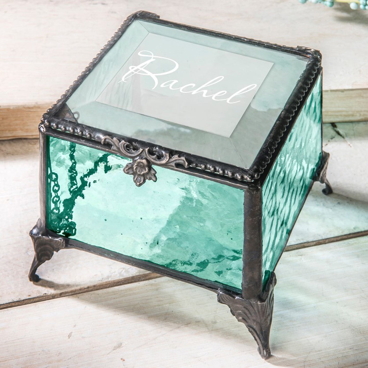 Personalize this glass keepsake box with a name and use as a gift with that added touch of thoughtfulness for your mom, friend, wife, daughter, sister or girlfriend.