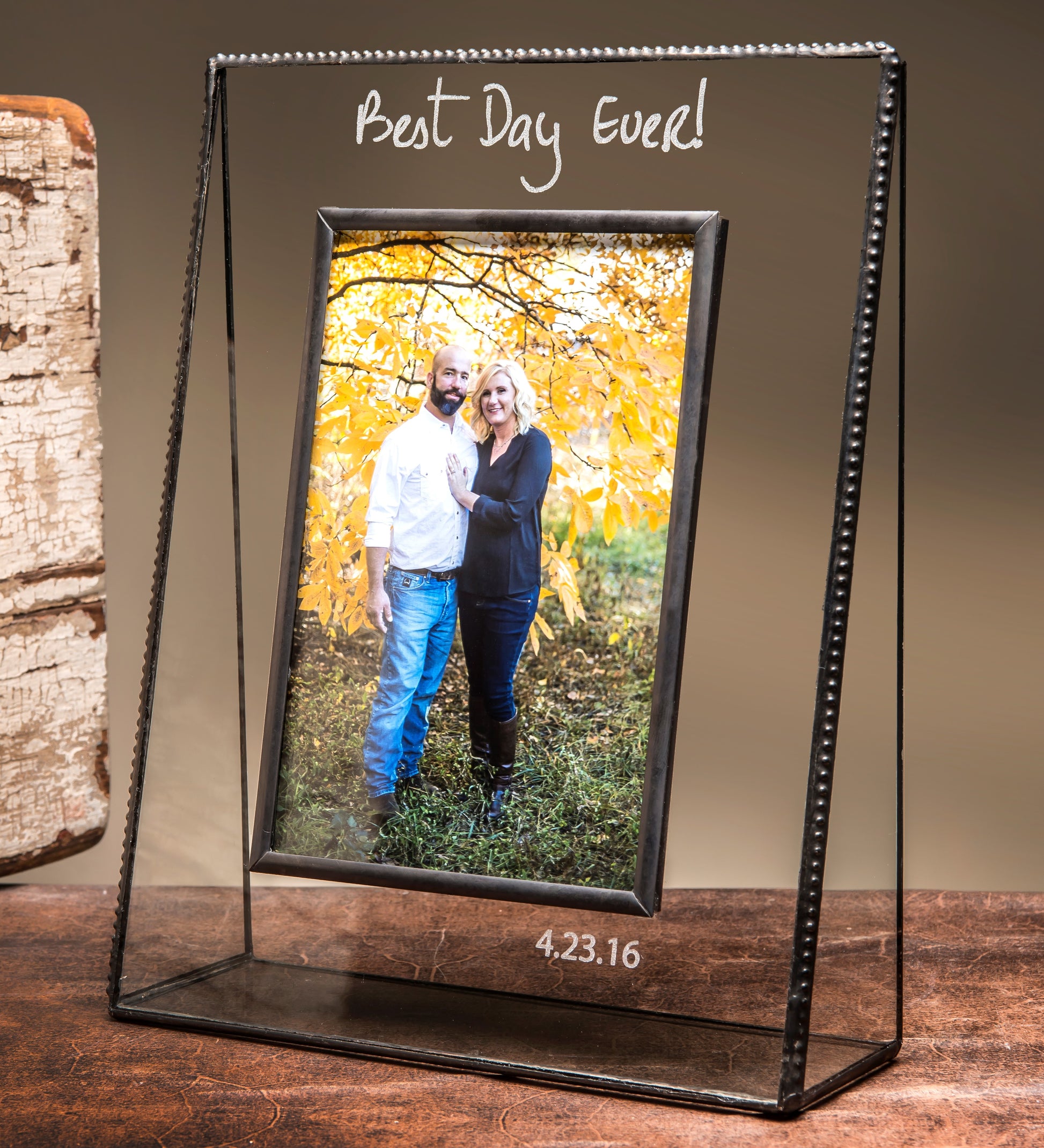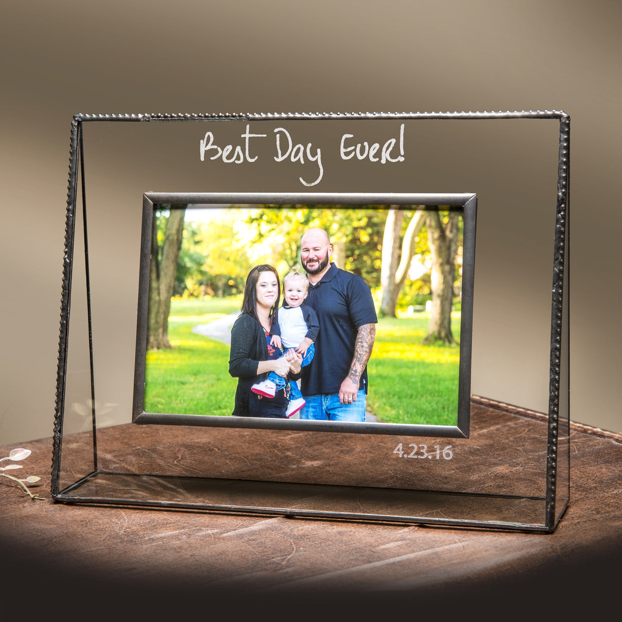 Celebrate your best day ever, every day! When a cherished memory is displayed, this personalized glass photo frame says it all. Personalized photo frames make special gifts, and with a statement like "Best Day Ever" you can't go wrong. Give it to anyone for any special occasion so they can showcase a memory like the birth of a child, their wedding, a special vacation, or any other momentous occasion. Or purchase this unique piece for your own home after you've experienced your own "best day ever."