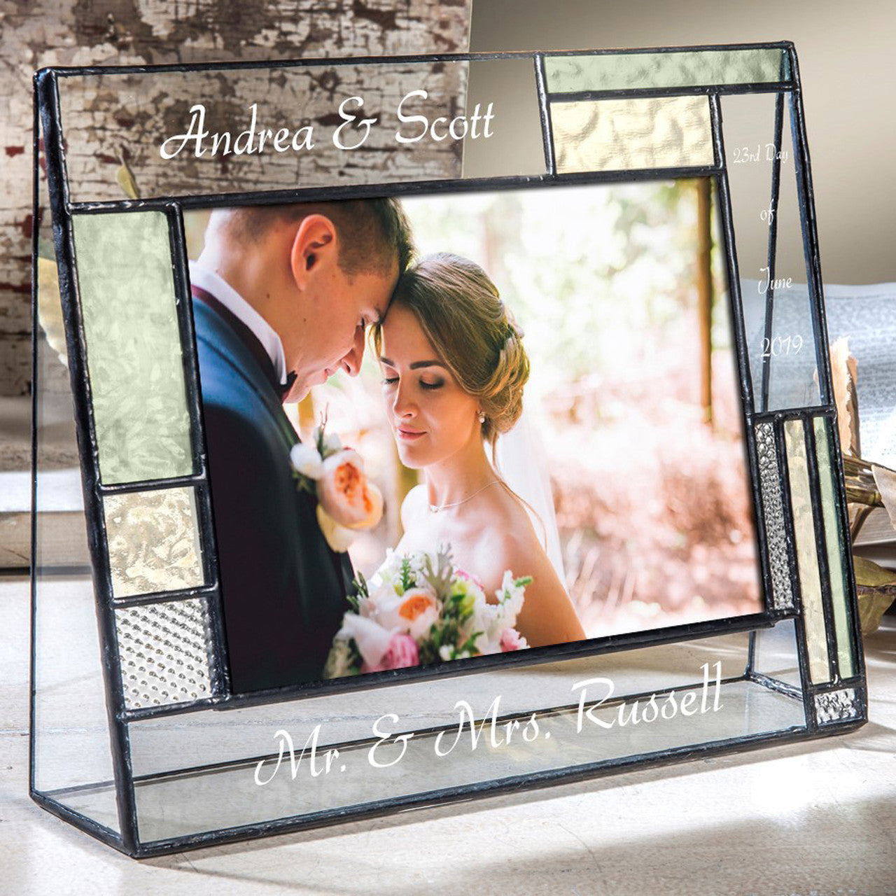 Let us custom engrave this beautiful glass picture frame for the wedding couple commemorating the beginning of their life together.